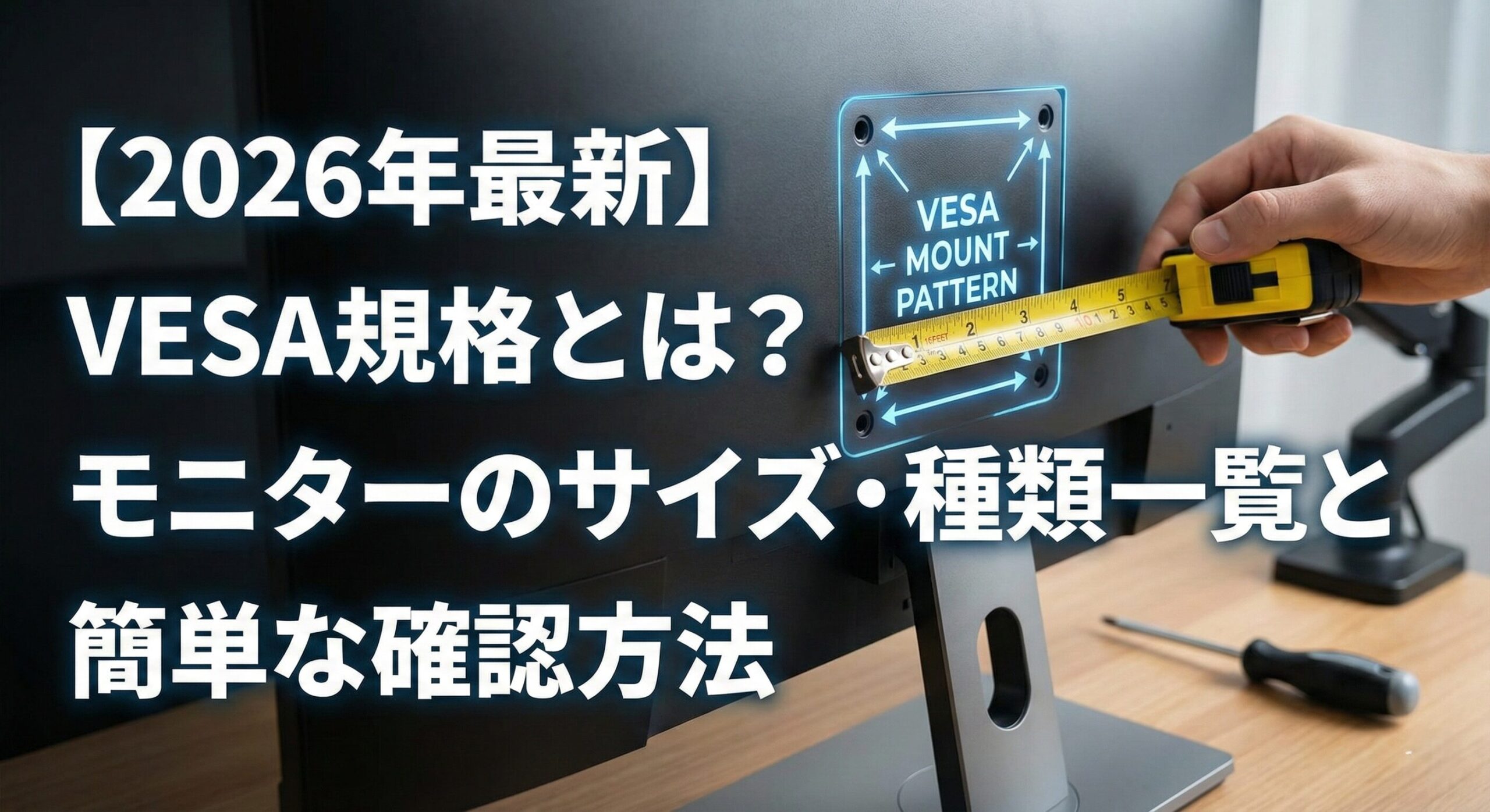 VESA規格とは、モニターやディスプレイをモニターアームや壁掛け金具に取り付けるためのネジ穴の間隔を定めた国際標準規格のことです。この記事では、VESA規格の基本知識から、お使いのモニタがどのサイズや種類に対応しているか […]