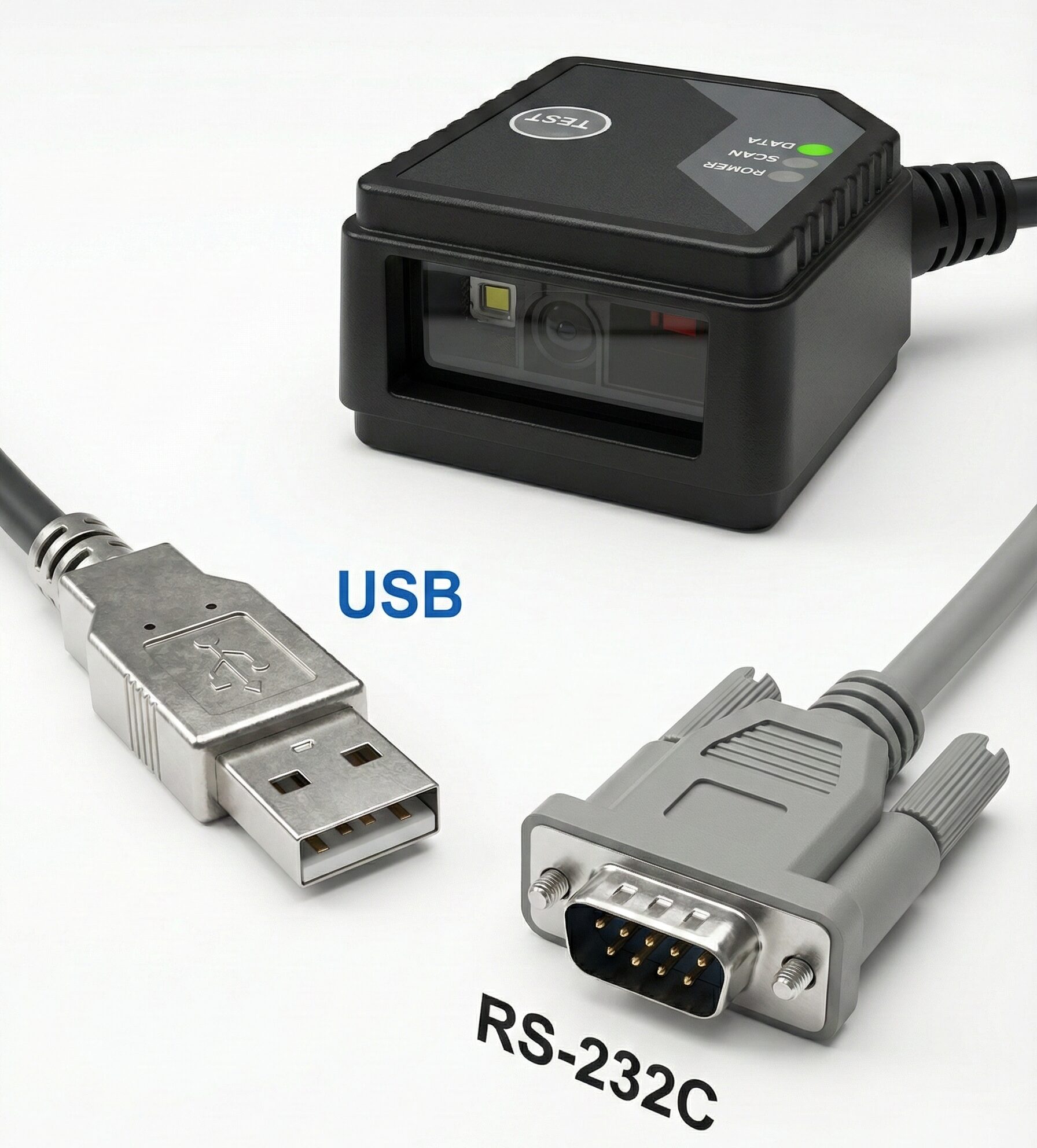 接続ポートは汎用的な「USB(HID/COM)」と、産業機器で標準的な「RS-232C」の2モデルから選択いただけます。